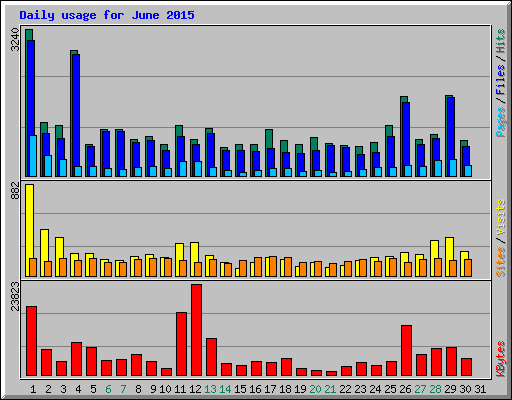 | Day | Hits | Files | Pages | Visits | Sites | KBytes | ||||||